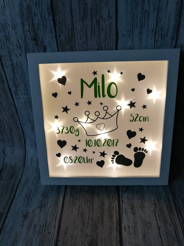 Dieser liebevoll gestaltete Bilderrahmen im stilvollen weißen Rahmen ist das perfekte Geschenk zur Geburt, Taufe oder als besondere Deko fürs Kinderzimmer.