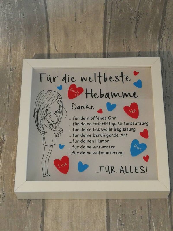 Dieser liebevoll gestaltete Bilderrahmen im stilvollen weißen Rahmen ist das perfekte Geschenk für die Beste Hebamme.